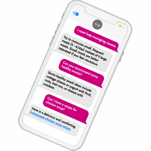 Personalized nutrition and symptom management information from Ina® is clinically and contextually appropriate.